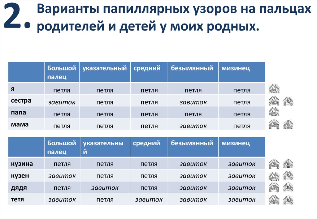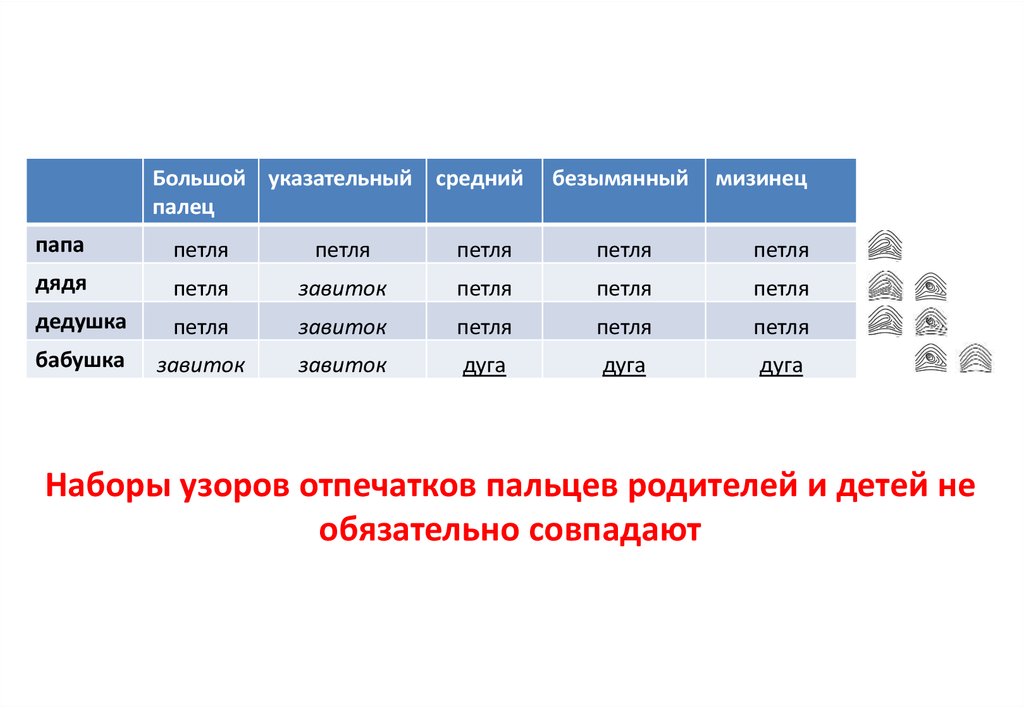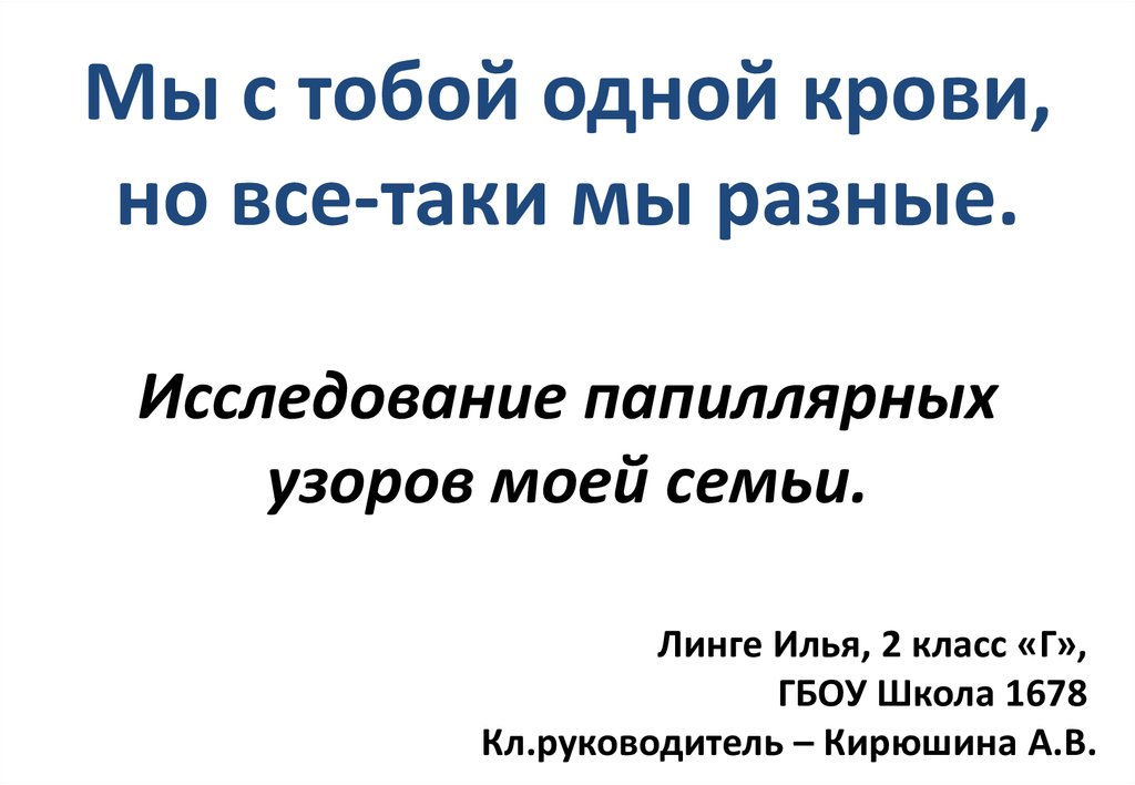 Мы с тобой одной крови, но все-таки мы разные. Исследование папиллярных узоров моей семьи