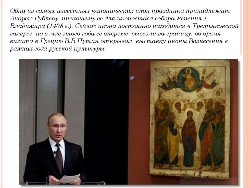 Грецию В.В.Путин открывал выставку иконы Вознесения в