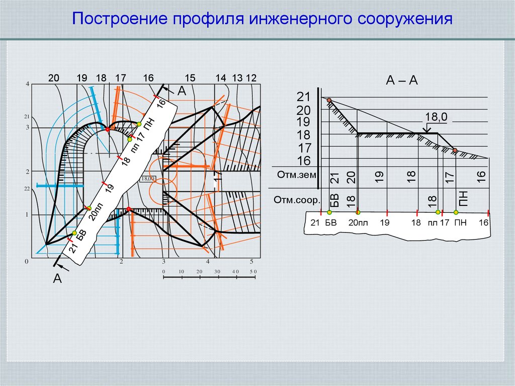 Построение профиля инженерного сооруженияА–А