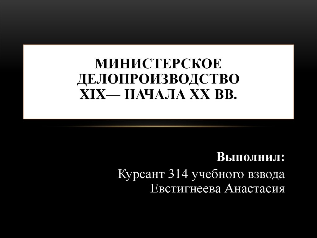 1. МИНИСТЕРСКОЕ ДЕЛОПРОИЗВОДСТВО XIX— начала XX вв.