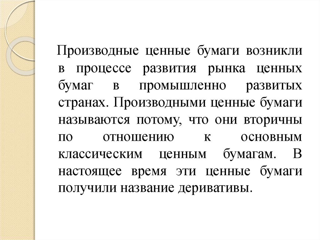 Производные ценные бумаги возниклив процессе развития рынка ценных