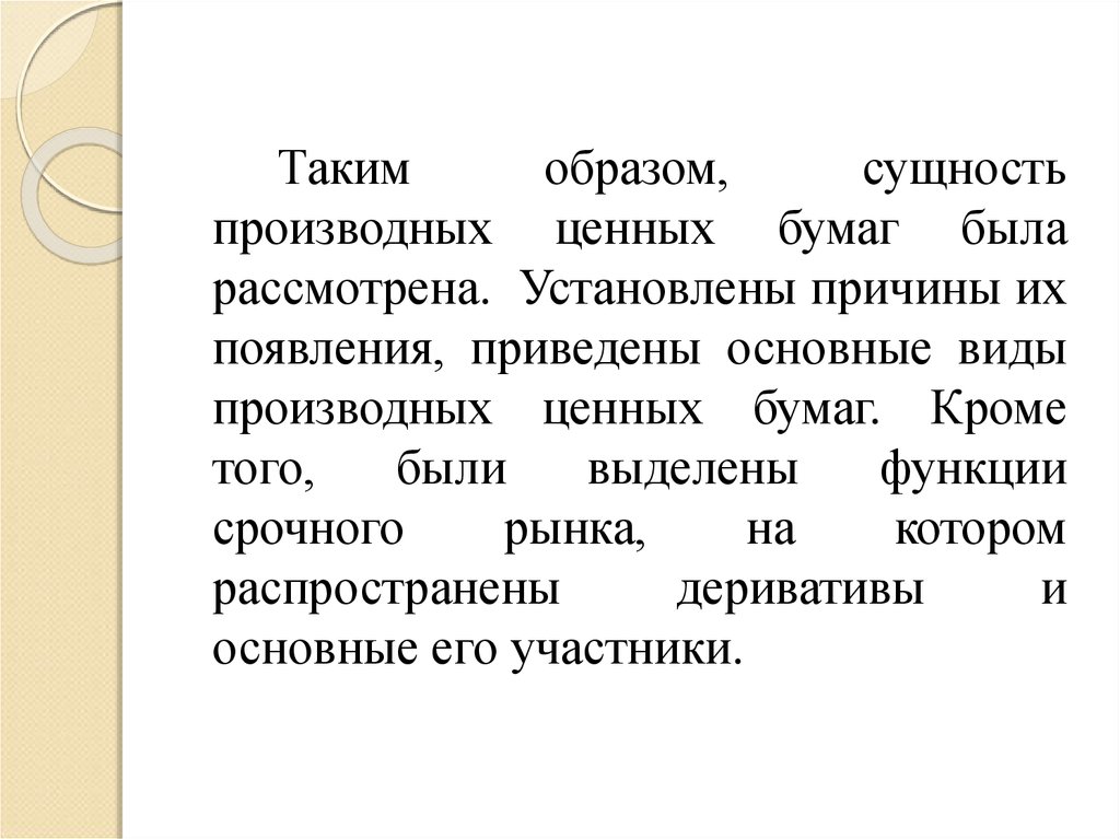 производных ценных бумаг была