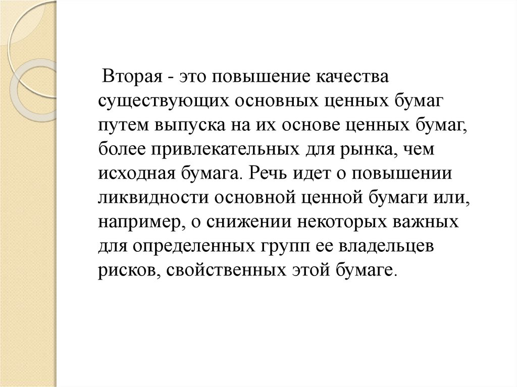Вторая - это повышение качествасуществующих основных ценных бумаг