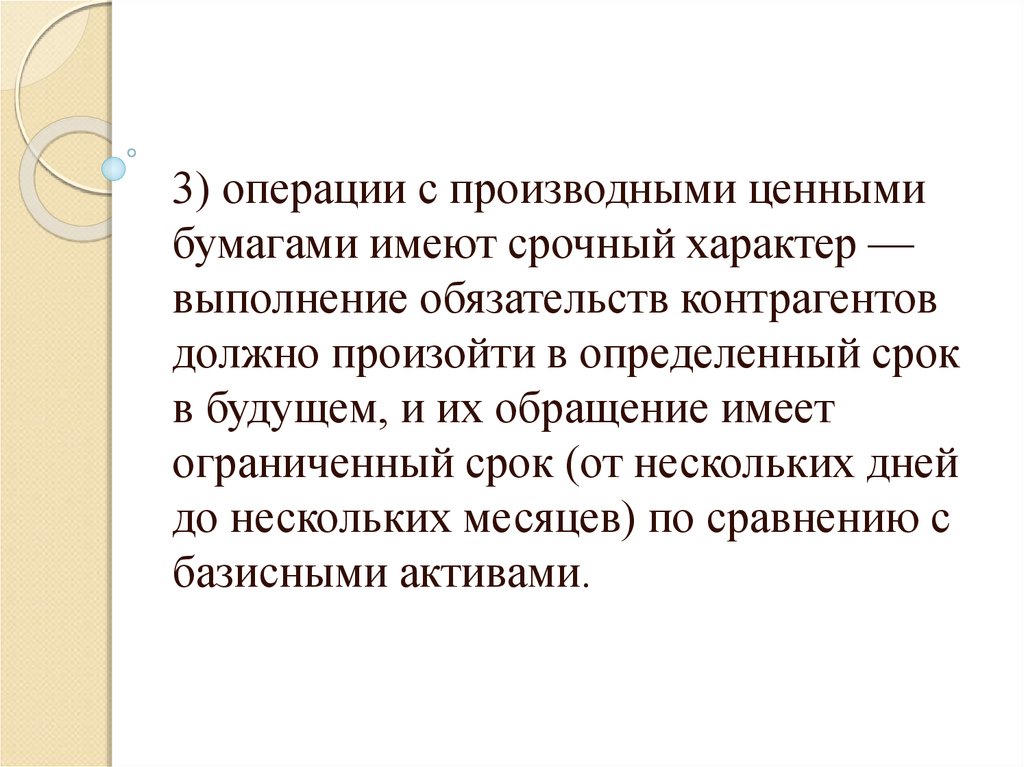 3) операции с производными ценнымибумагами имеют срочный характер —
