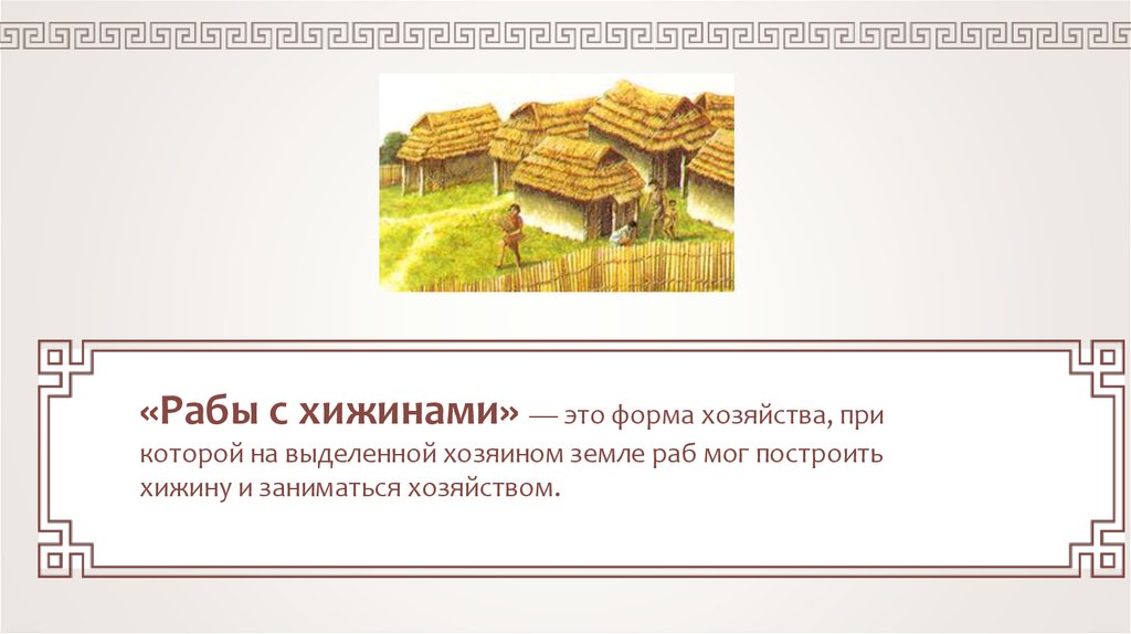 «Рабы с хижинами» — это форма хозяйства, прикоторой на выделенной хозяином земле раб мог построить