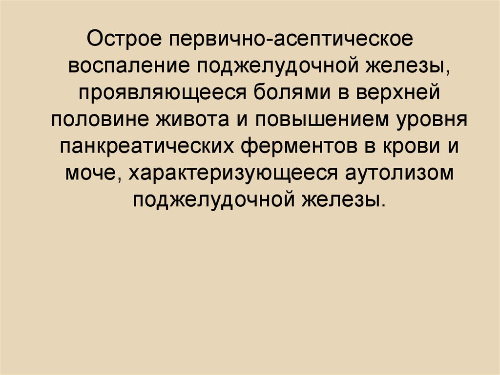 Острое первично-асептическоевоспаление поджелудочной железы,