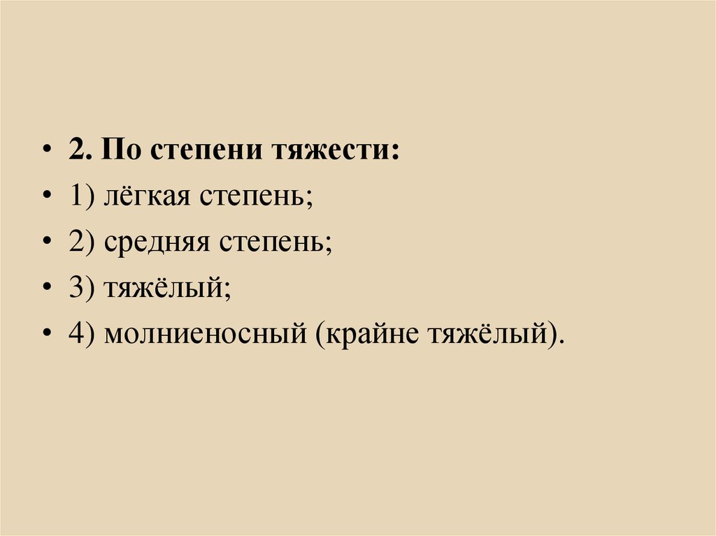 По течению: легкий, тяжелый.По инфицированности: стерильный,
