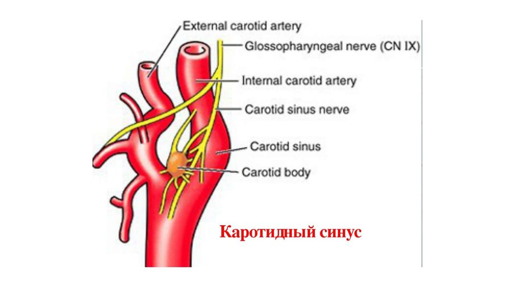 Рецепторы рефлексогенных зон:• Барорецепторы (аортальный, каротидный синусы);
