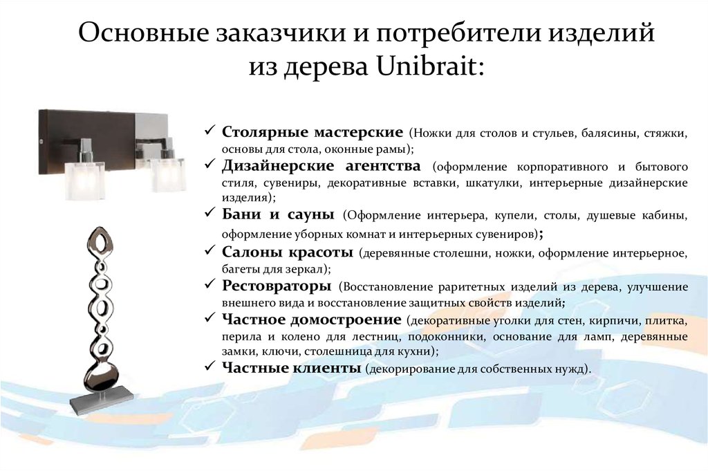 Основные заказчики и потребители изделийиз дерева Unibrait: