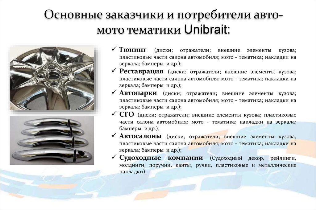 Основные заказчики и потребители автомото тематики Unibrait:Тюнинг