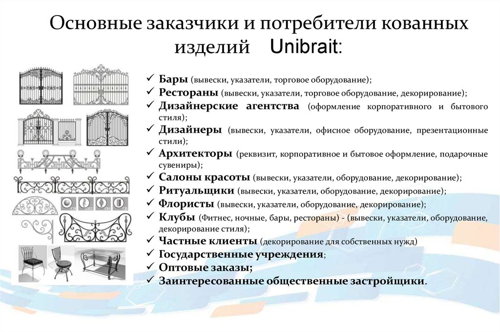 Основные заказчики и потребители кованныхизделий Unibrait: