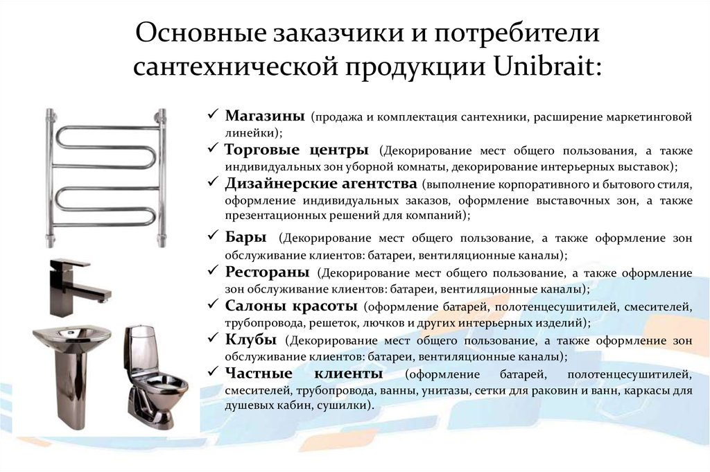 Основные заказчики и потребителисантехнической продукции Unibrait: