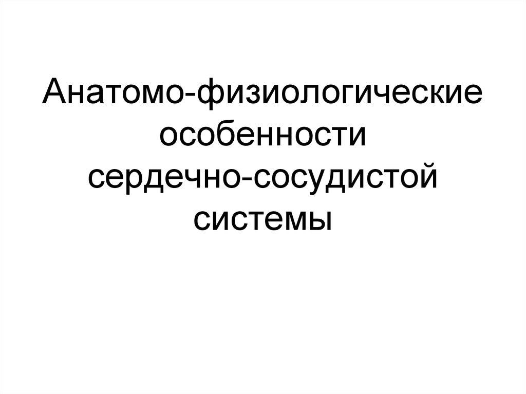 Анатомо-физиологические особенности сердечно-сосудистой системы