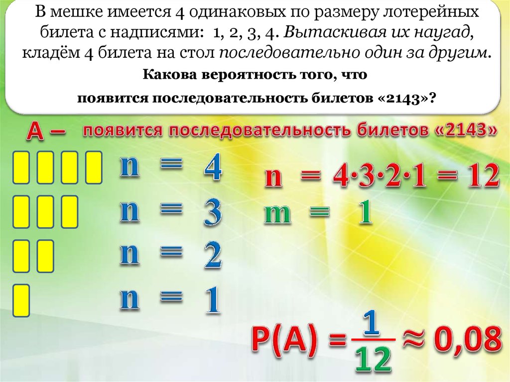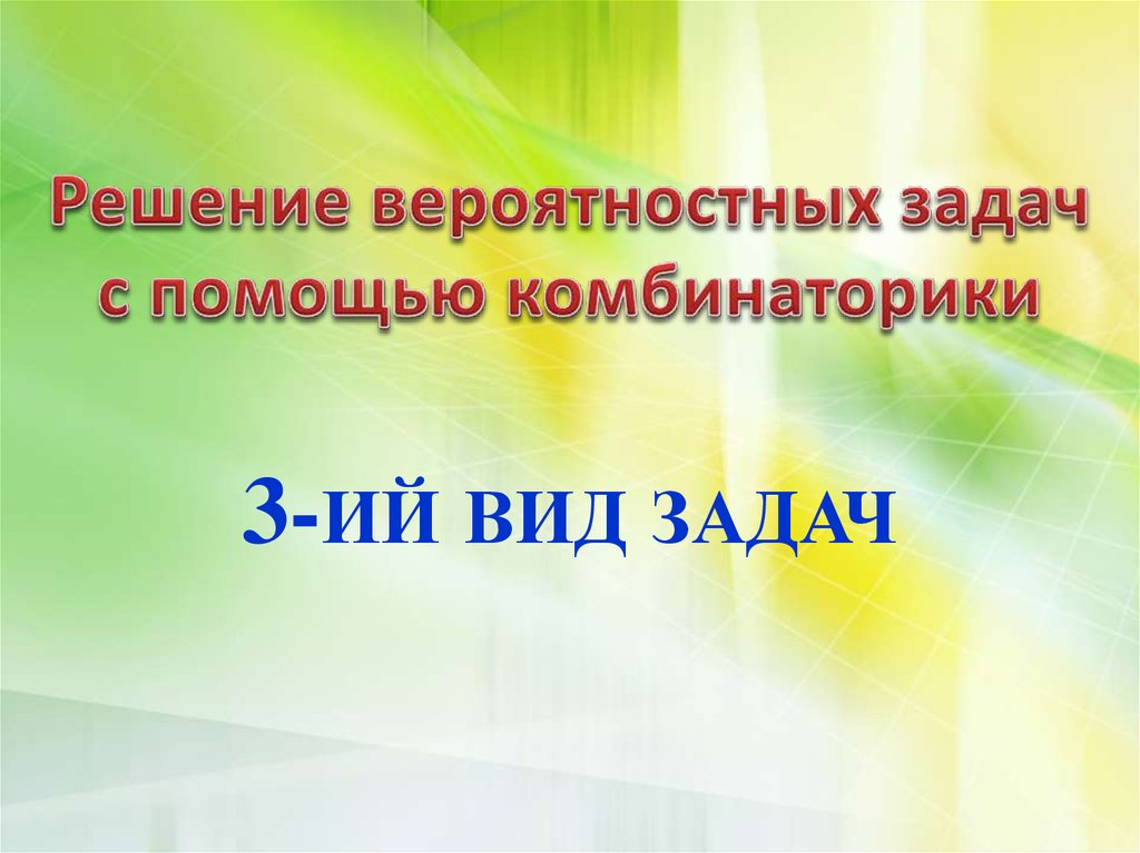 Решение вероятностных задач с помощью комбинаторики. 3-й вид задач