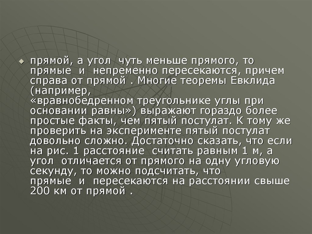 прямой, а угол чуть меньше прямого, топрямые и непременно пересекаются, причем