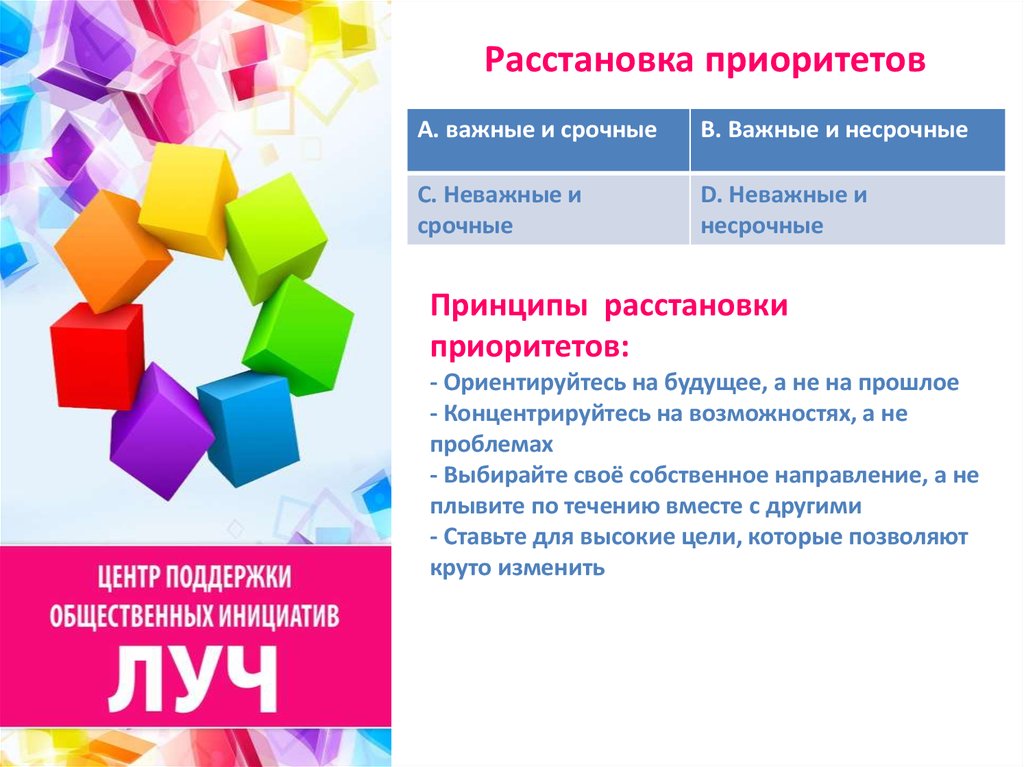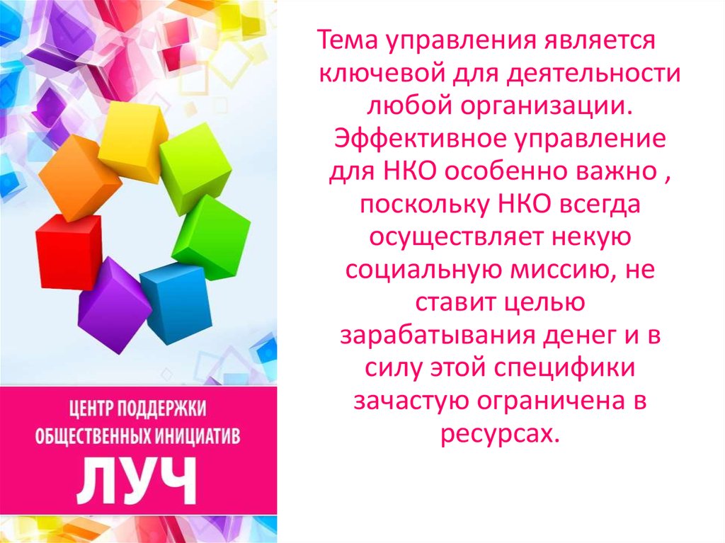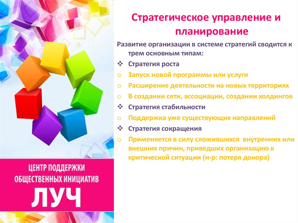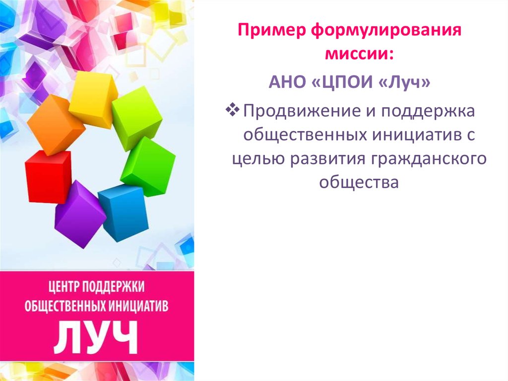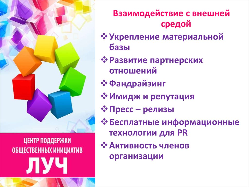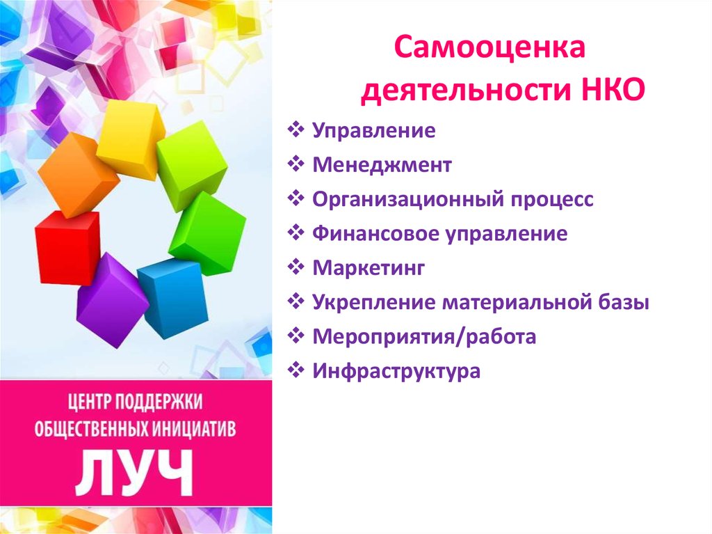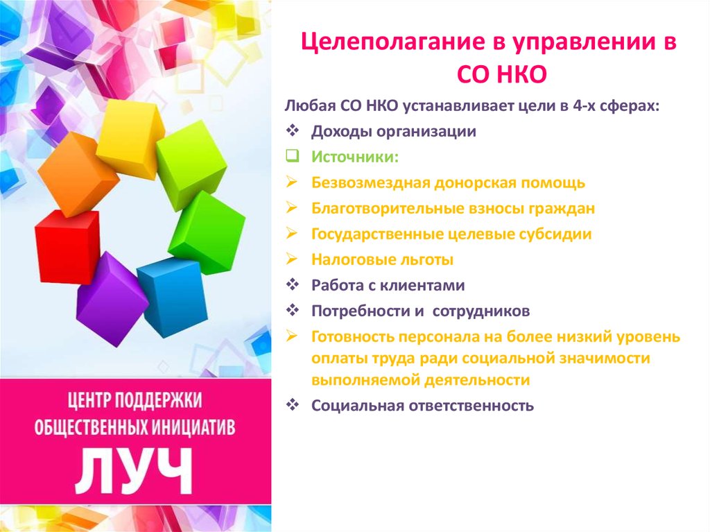 Любая СО НКО устанавливает цели в 4-х сферах: