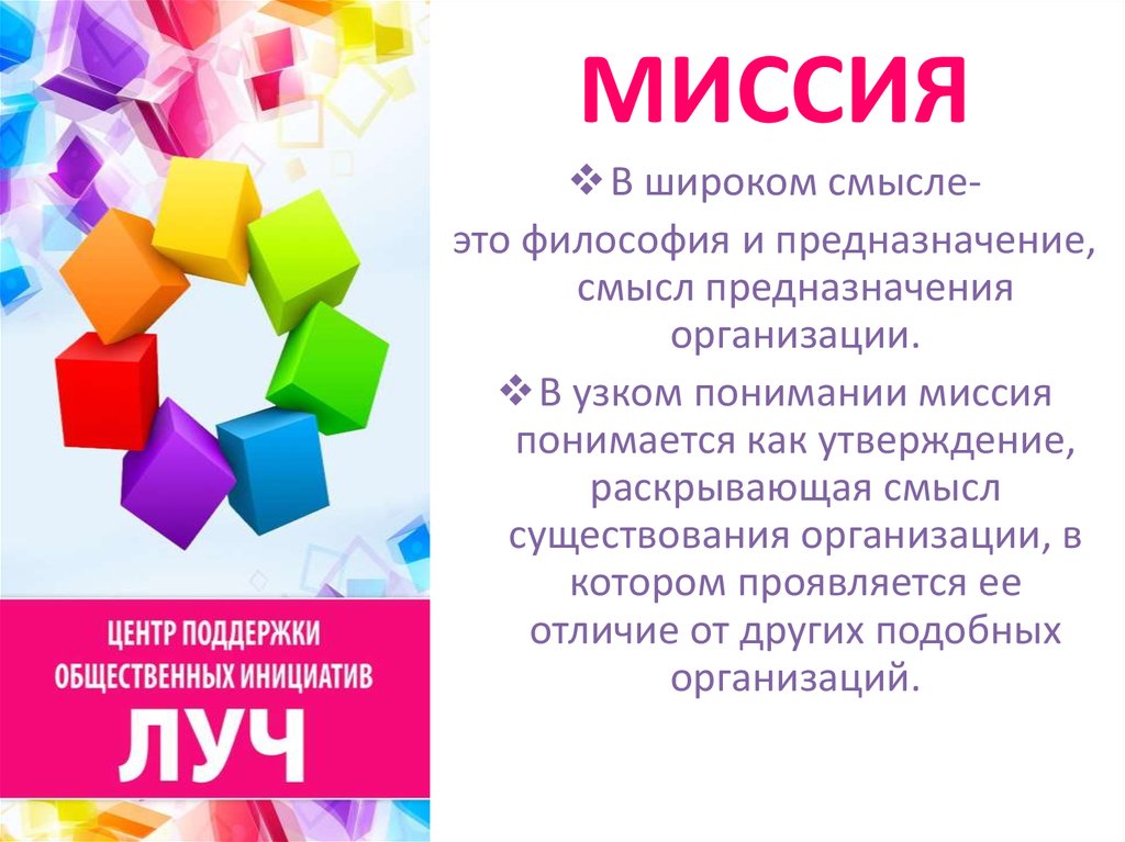 МИССИЯВ широком смыслеэто философия и предназначение,