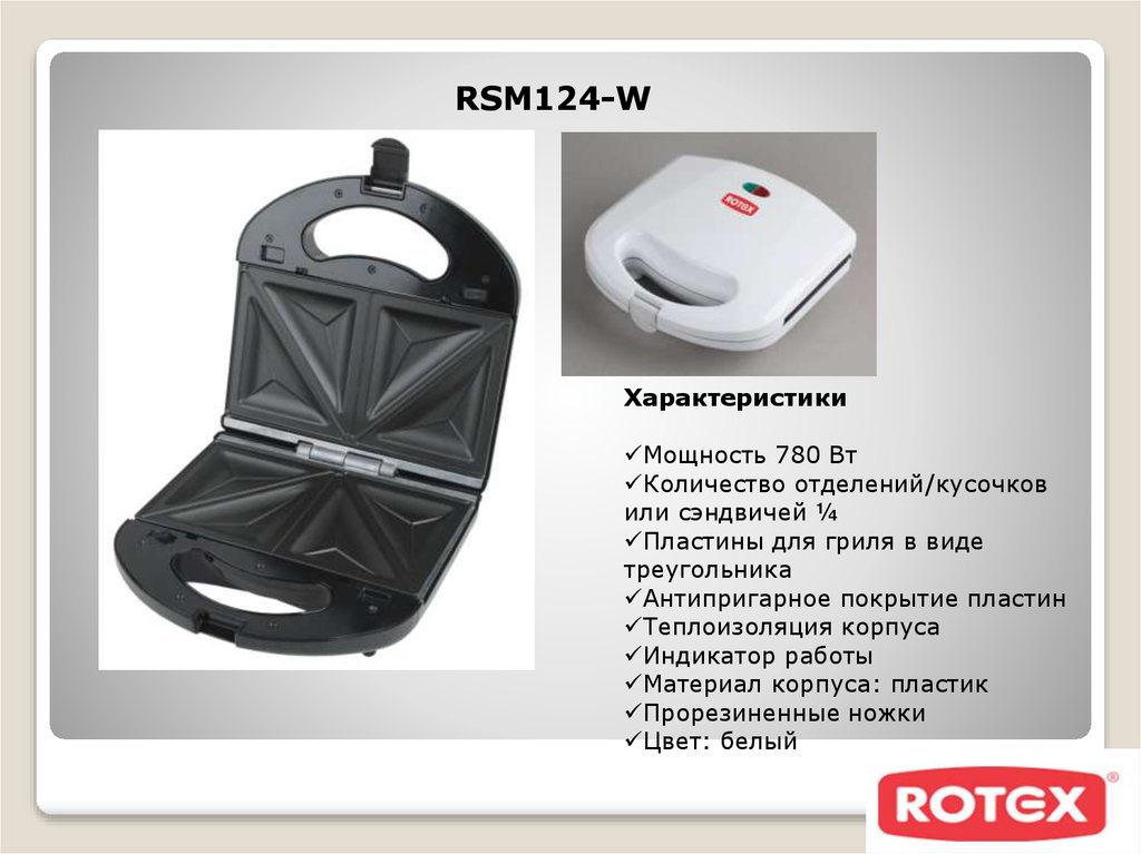 1. ROTEX: Бутербродница RSM124-W (пластины для гриля в треугольника)