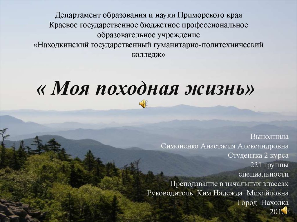 1. Департамент образования и науки Приморского края Краевое государственное бюджетное профессиональное образовательное учреждение