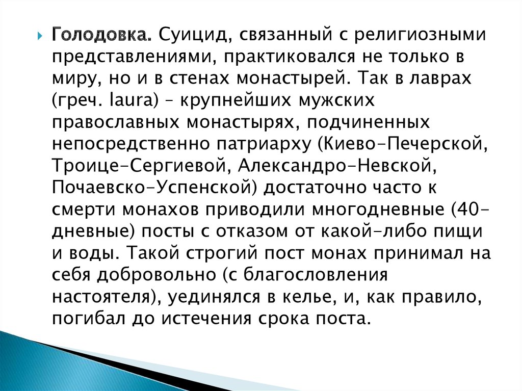 Голодовка. Суицид, связанный с религиознымипредставлениями, практиковался не только в