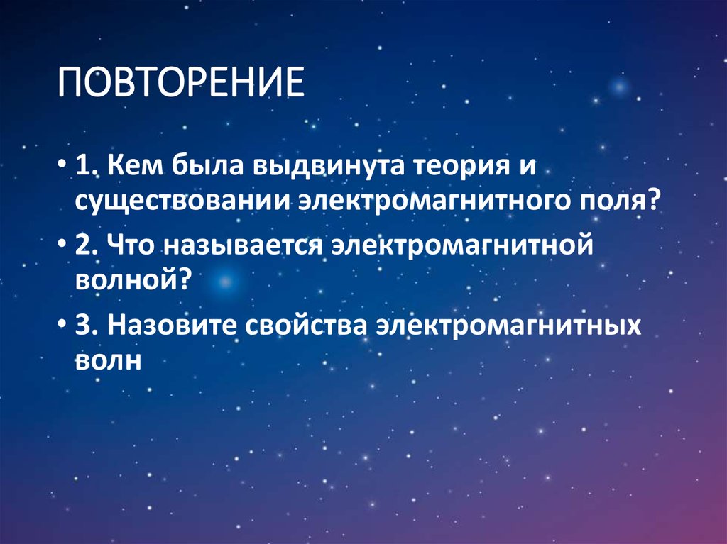 • 1. Кем была выдвинута теория исуществовании электромагнитного поля?