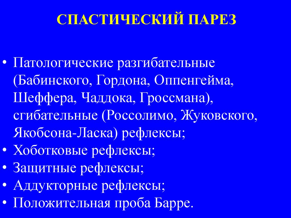 СПАСТИЧЕСКИЙ ПАРЕЗ• Патологические разгибательные