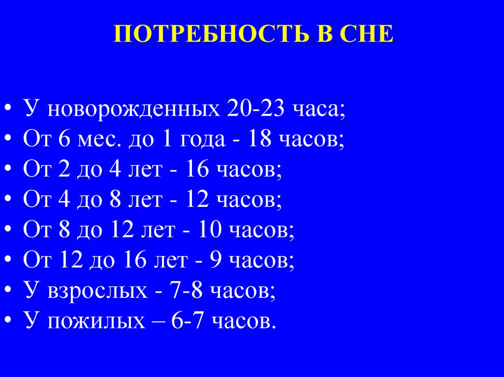 ПОТРЕБНОСТЬ В СНЕУ новорожденных 20-23 часа;