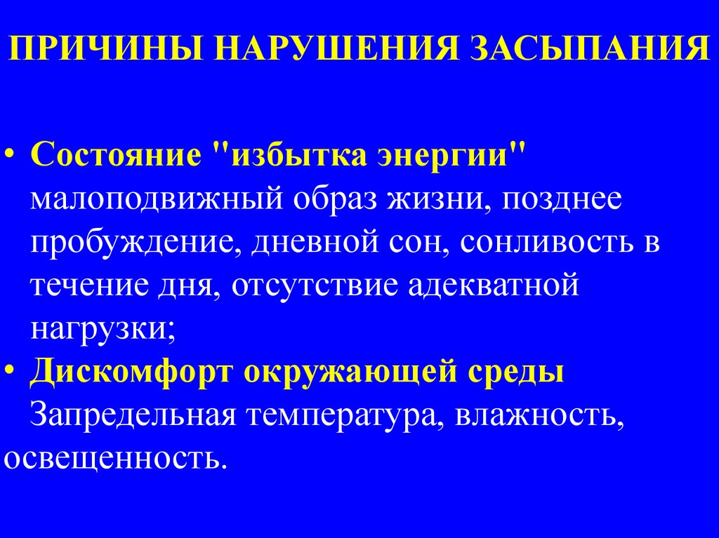 ПРИЧИНЫ НАРУШЕНИЯ ЗАСЫПАНИЯ• Состояние "избытка энергии"