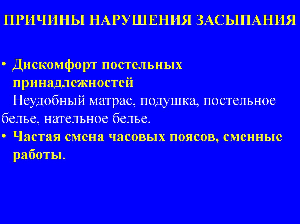 ПРИЧИНЫ НАРУШЕНИЯ ЗАСЫПАНИЯ• Дискомфорт постельных