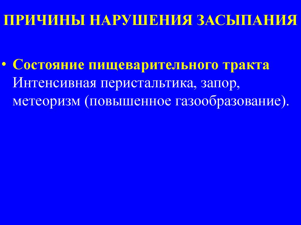 ПРИЧИНЫ НАРУШЕНИЯ ЗАСЫПАНИЯ• Состояние пищеварительного тракта