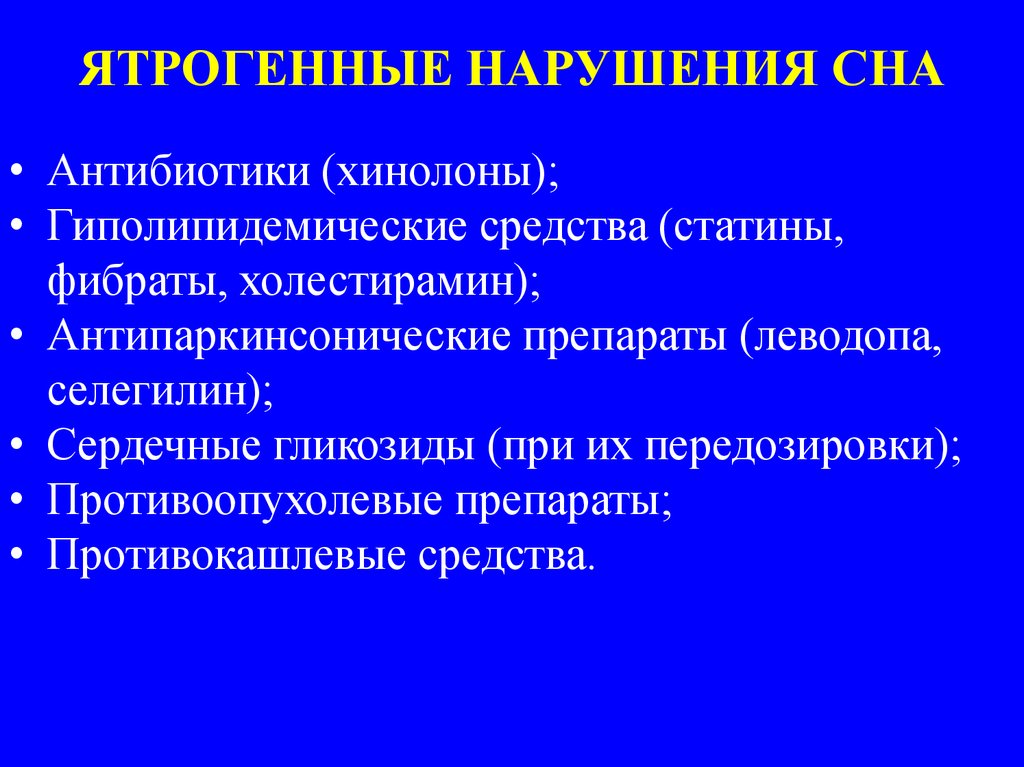 ЯТРОГЕННЫЕ НАРУШЕНИЯ СНА• Антибиотики (хинолоны);