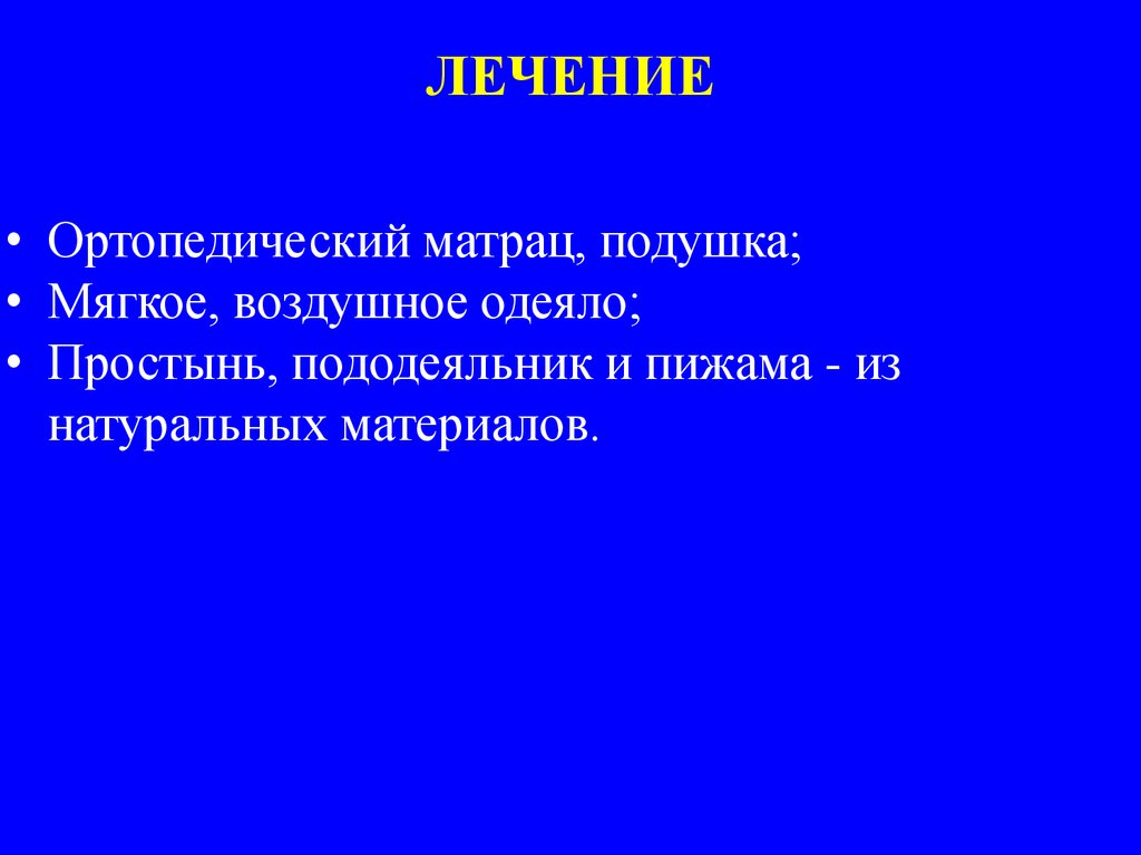 ЛЕЧЕНИЕ• Ортопедический матрац, подушка;