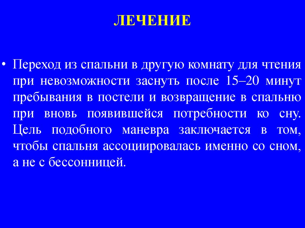 ЛЕЧЕНИЕ• Переход из спальни в другую комнату для чтения