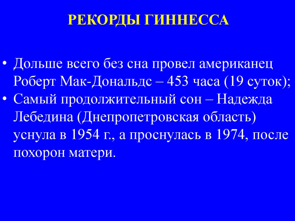 РЕКОРДЫ ГИННЕССА• Дольше всего без сна провел американец