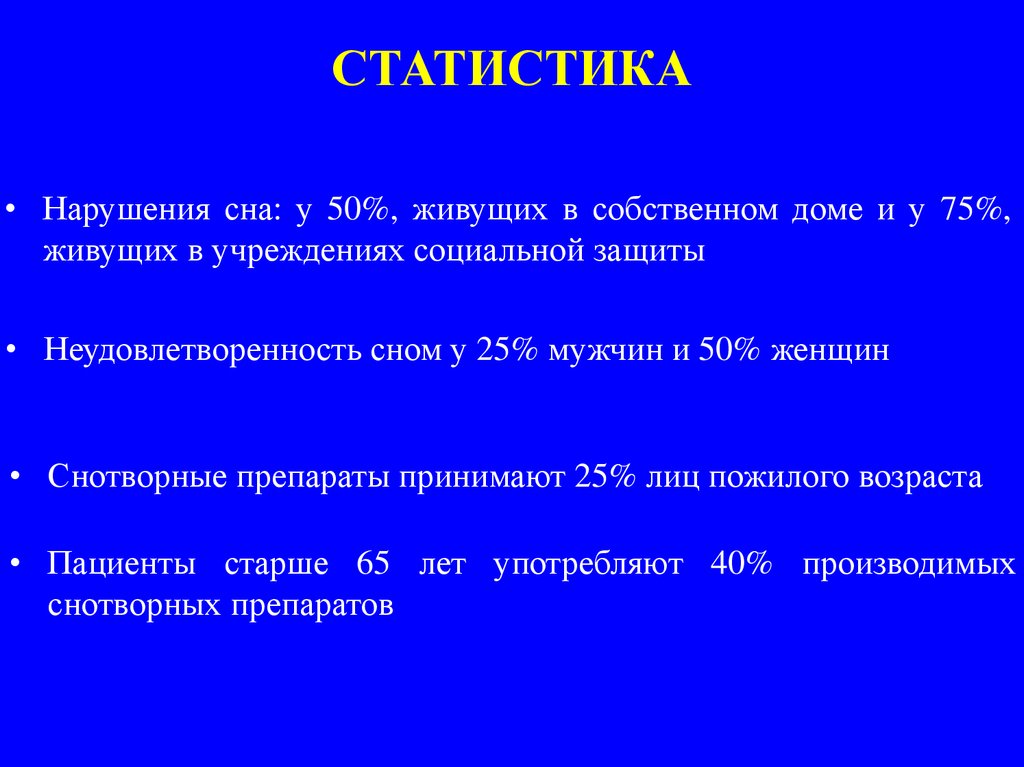 • Снотворные препараты принимают 25% лиц пожилого возраста