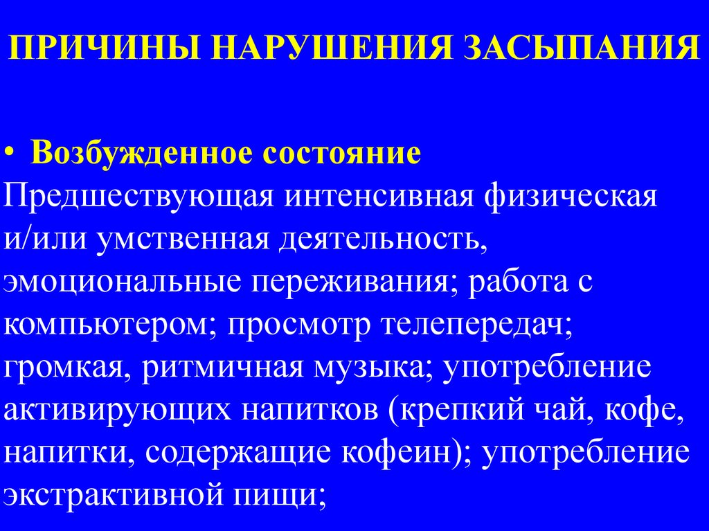ПРИЧИНЫ НАРУШЕНИЯ ЗАСЫПАНИЯ• Возбужденное состояние