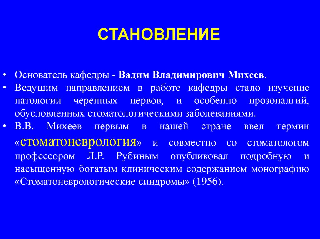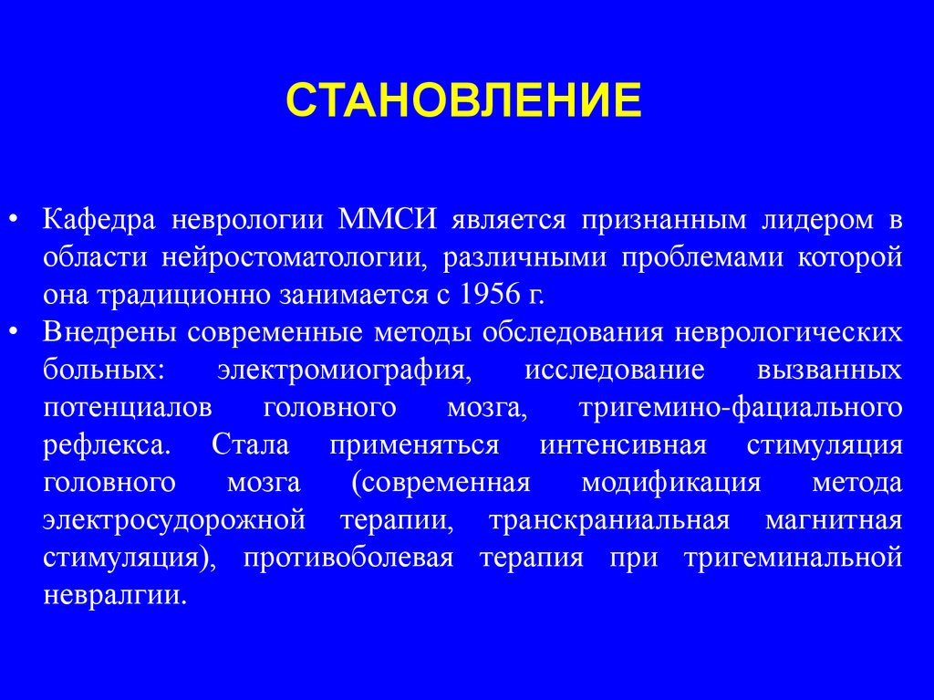 СТАНОВЛЕНИЕ• Кафедра неврологии ММСИ является признанным лидером в