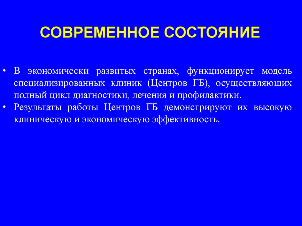 СОВРЕМЕННОЕ СОСТОЯНИЕ• В экономически развитых странах, функционирует модель