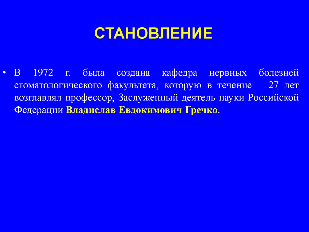 СТАНОВЛЕНИЕ• В 1972 г. была создана кафедра нервных болезней