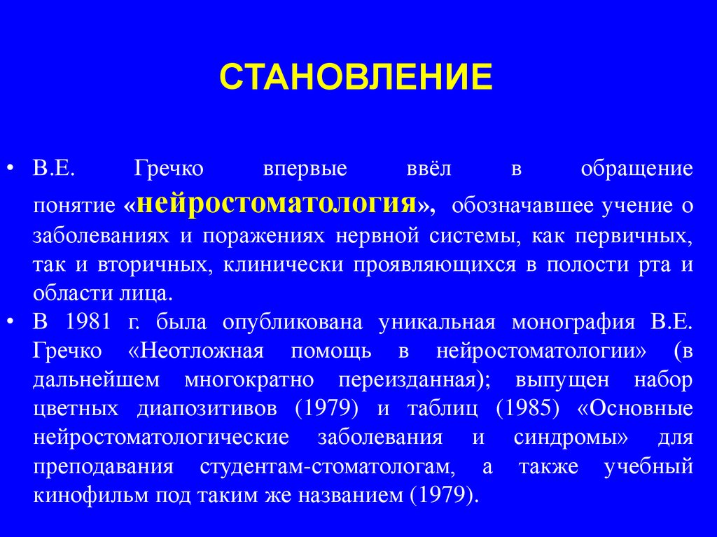 В 2008 г. вышло в свет учебное пособие «Нейростоматология»,