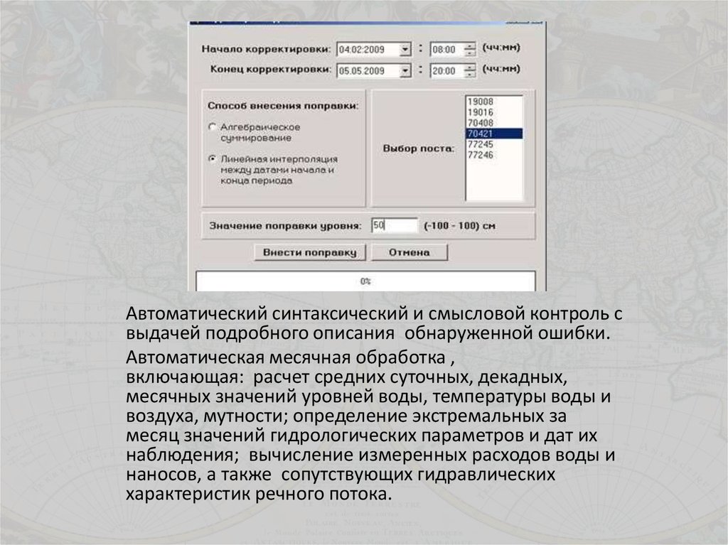 • контроль гидрологической информации с интерактивными