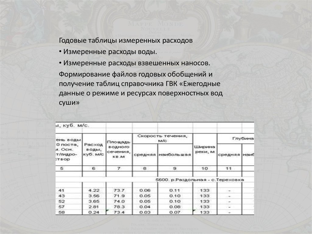 Годовые таблицы измеренных расходов• Измеренные расходы воды.