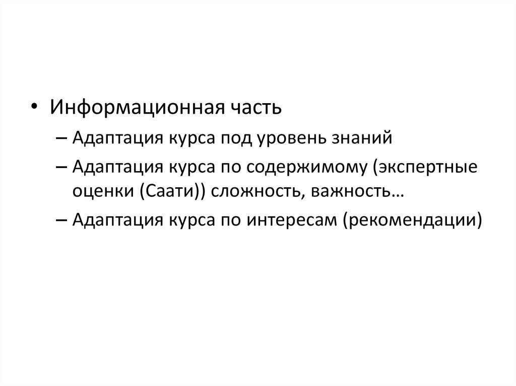 – Адаптация курса по содержимому (экспертные