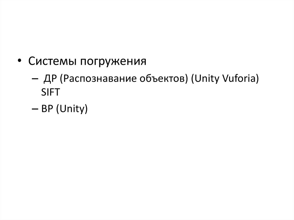 • Системы погружения– ДР (Распознавание объектов) (Unity Vuforia)