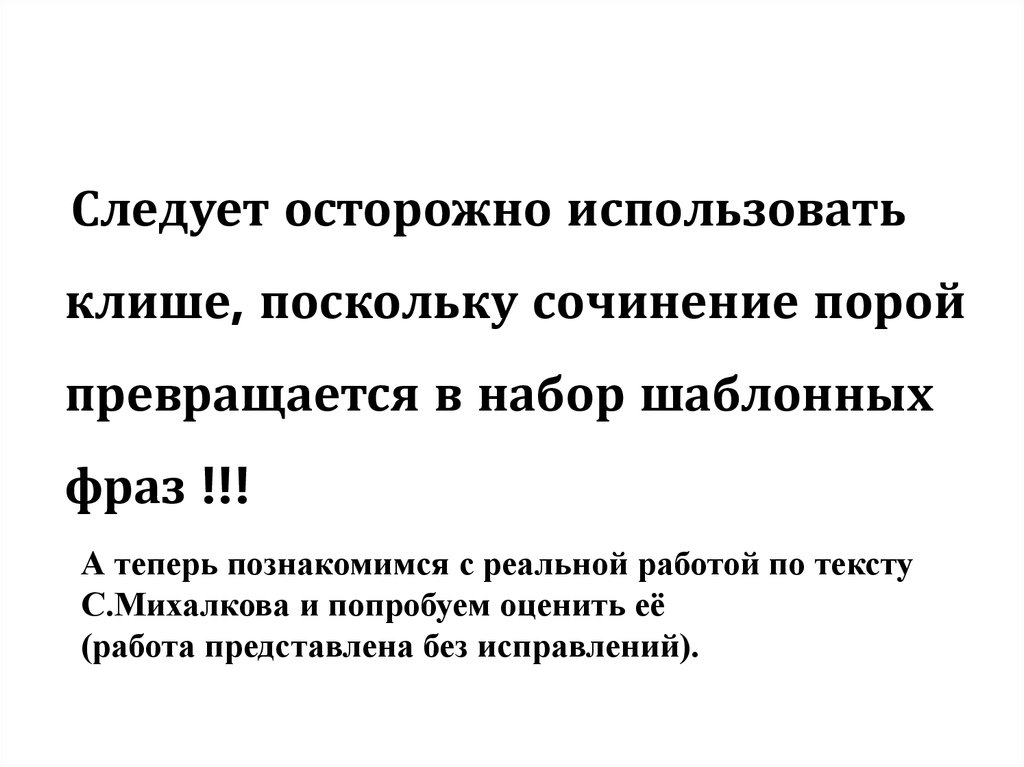 Следует осторожно использоватьклише, поскольку сочинение порой