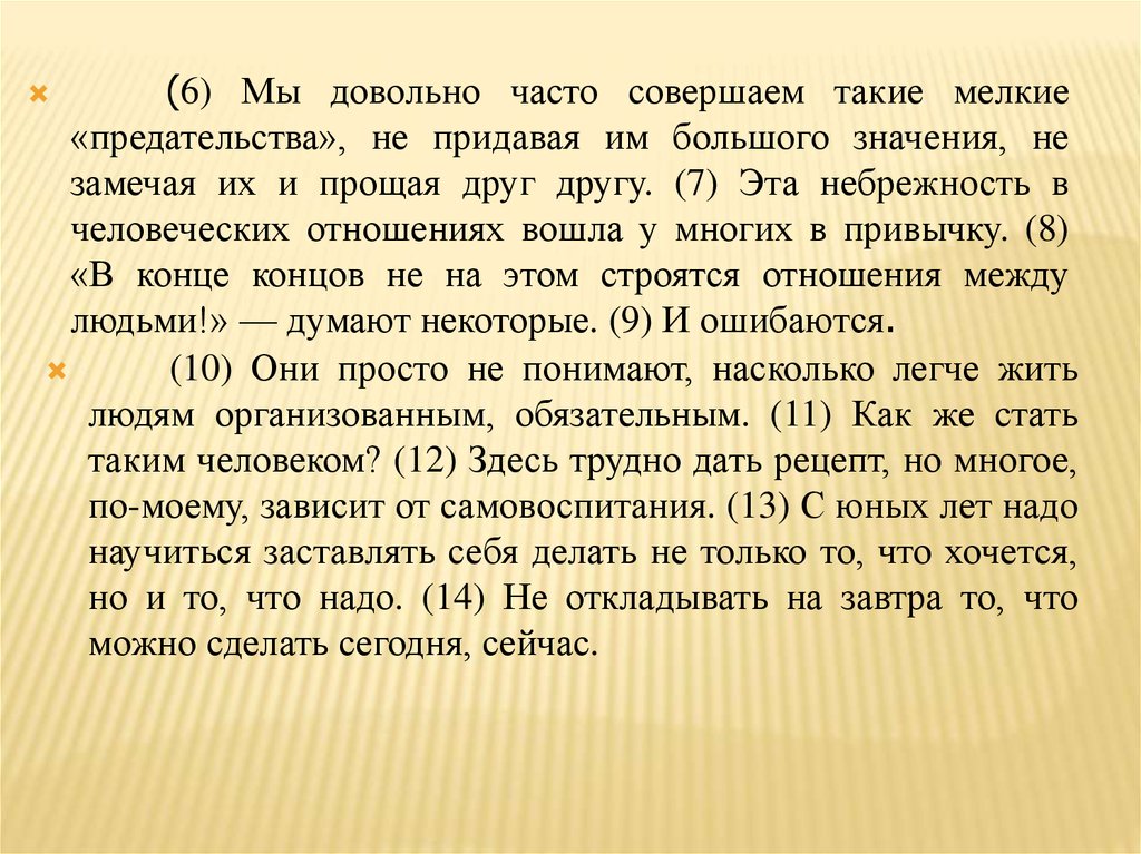 (6) Мы довольно часто совершаем такие мелкие«предательства», не придавая им большого значения, не
