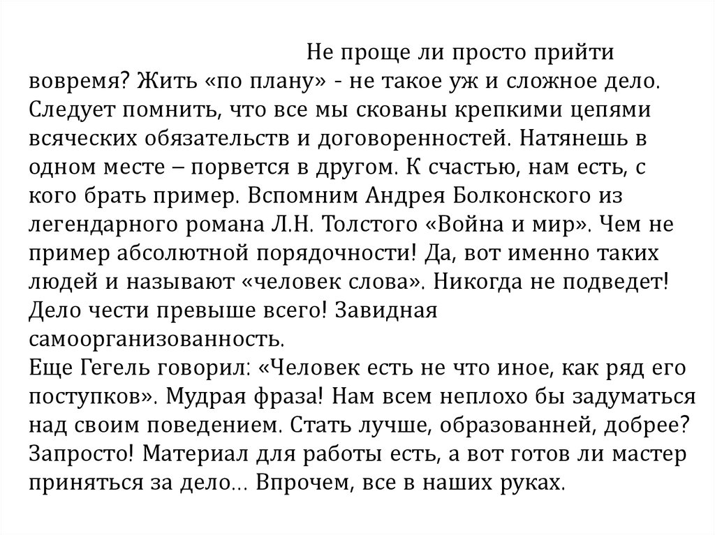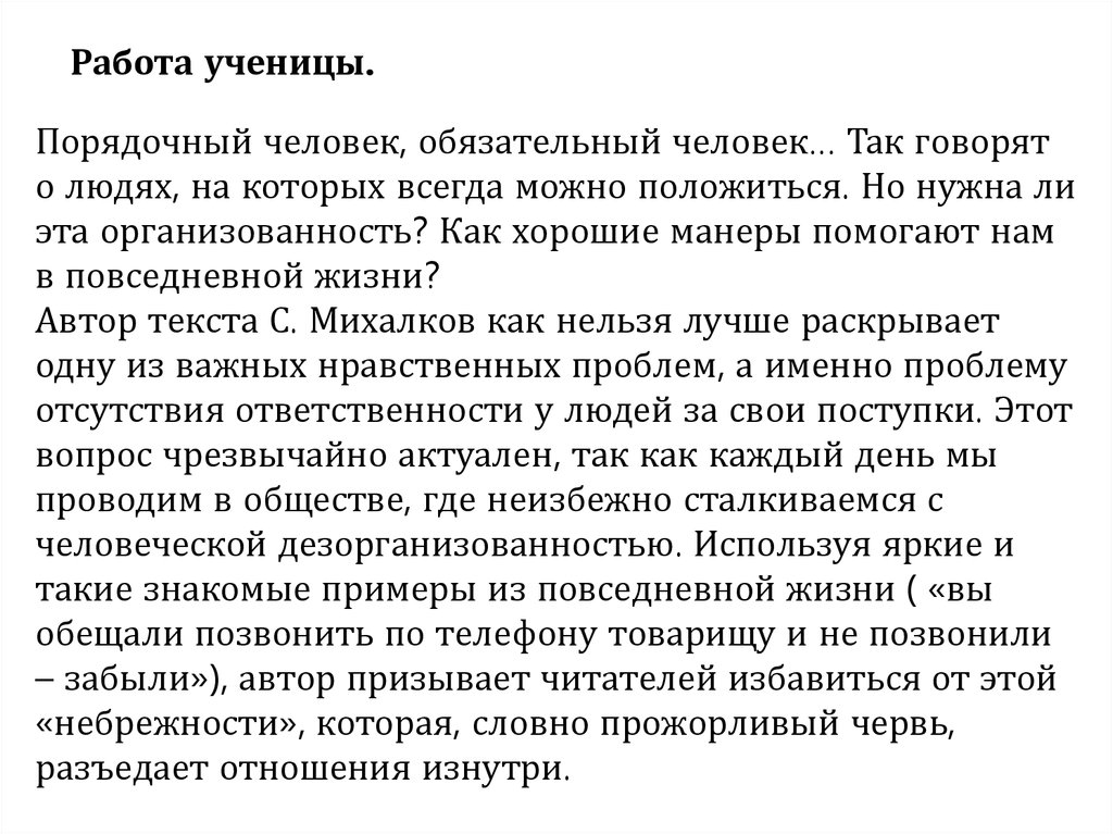 Работа ученицы.Порядочный человек, обязательный человек… Так говорят