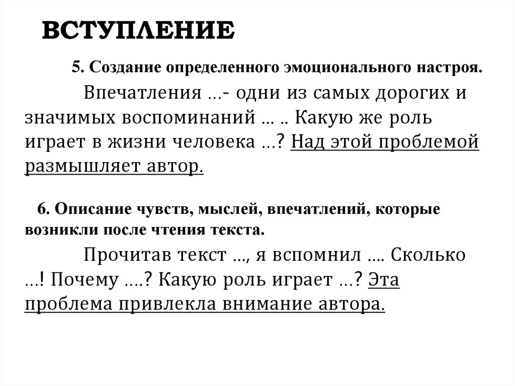 ВСТУПЛЕНИЕ5. Создание определенного эмоционального настроя.