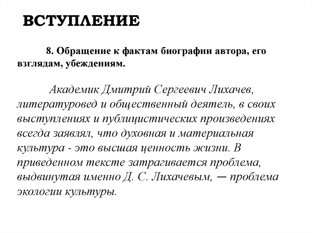 ВСТУПЛЕНИЕ8. Обращение к фактам биографии автора, его