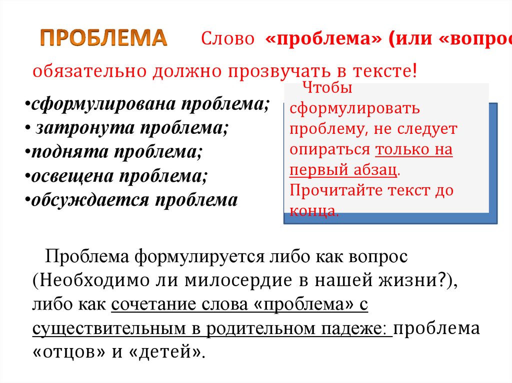 Слово «проблема» (или «вопрособязательно должно прозвучать в тексте!